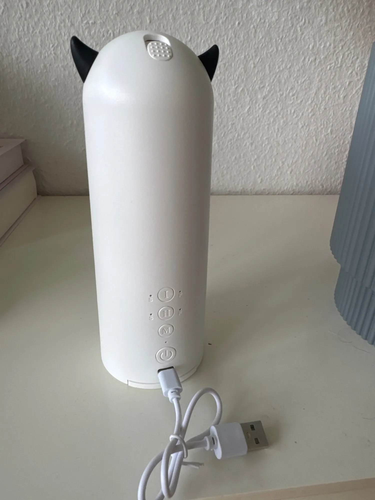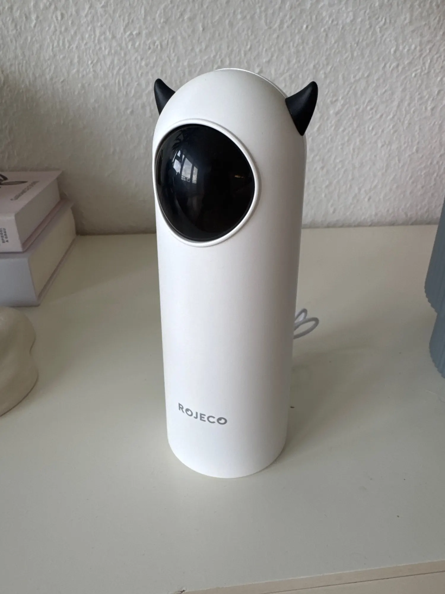 The devil machine is cool, the cat is delighted, it runs on batteries or can be charged; batteries can be purchased separately. Not included in the package. Arrived quickly and well-packaged. Three modes and the beam height can be adjusted; there is a switch on the head.